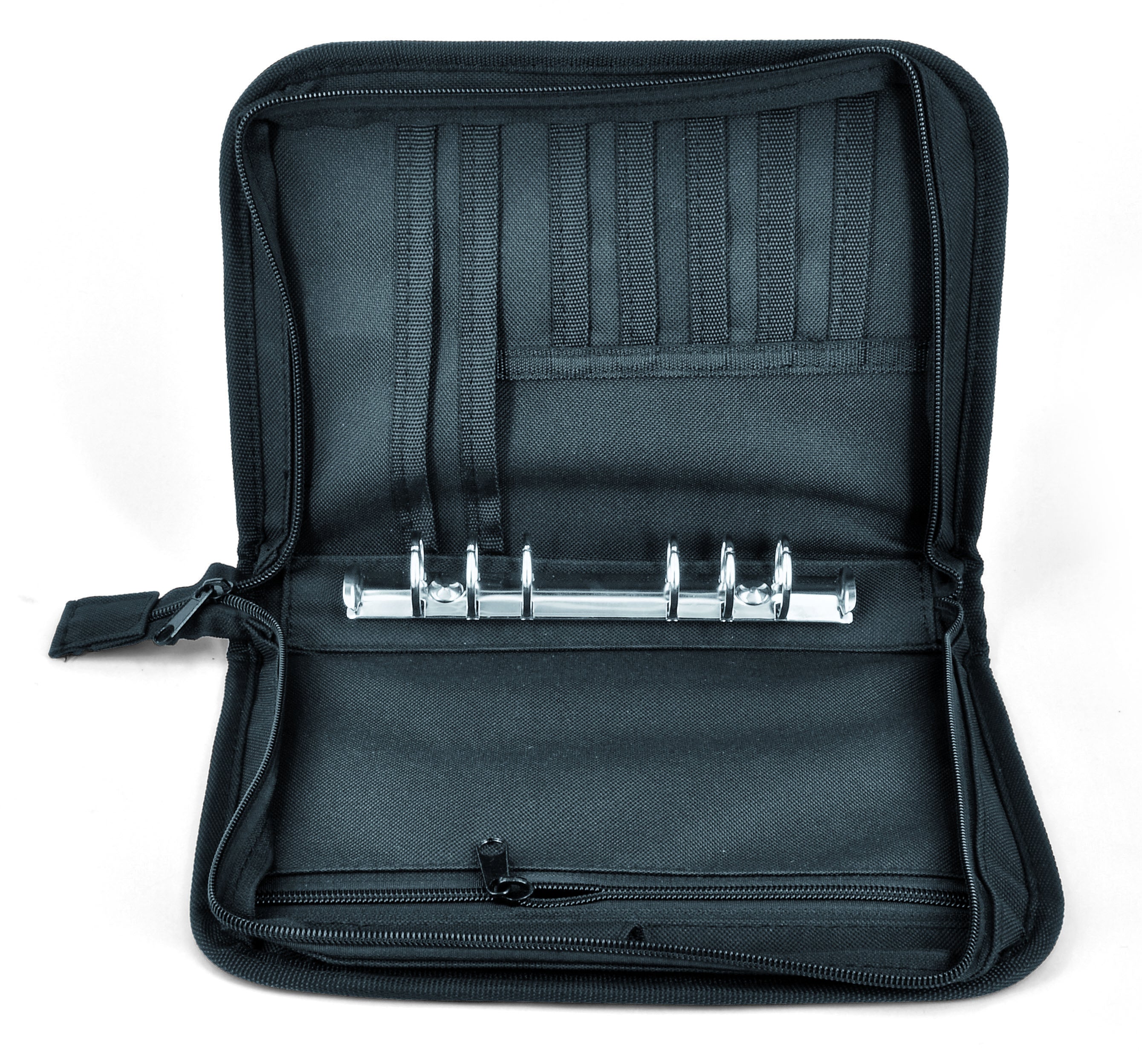 Dive logs with 3 or 6 rings made of 600 polyester with 'artistic' cover in 17 different designs.