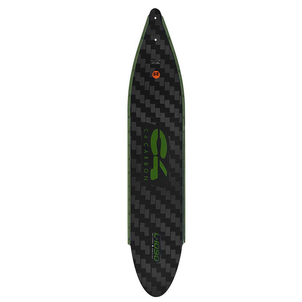 Blade in three different hardnesses: 25 (soft), 30 (medium) and 35 (medium-hard). The surface finish of the blade is carbon fiber with a military green decoration. The water rails are military green.