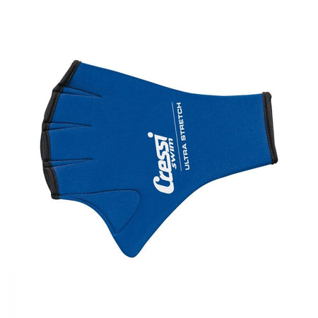 Webbed gloves for swimming and training. Made from ultra-stretch Ultrapsan neoprene.The outer coating on the back is dark blue, while the palm is made from single-lined neoprene (lined on the inner) to increase the coefficient of friction with the water, optimising thrust.