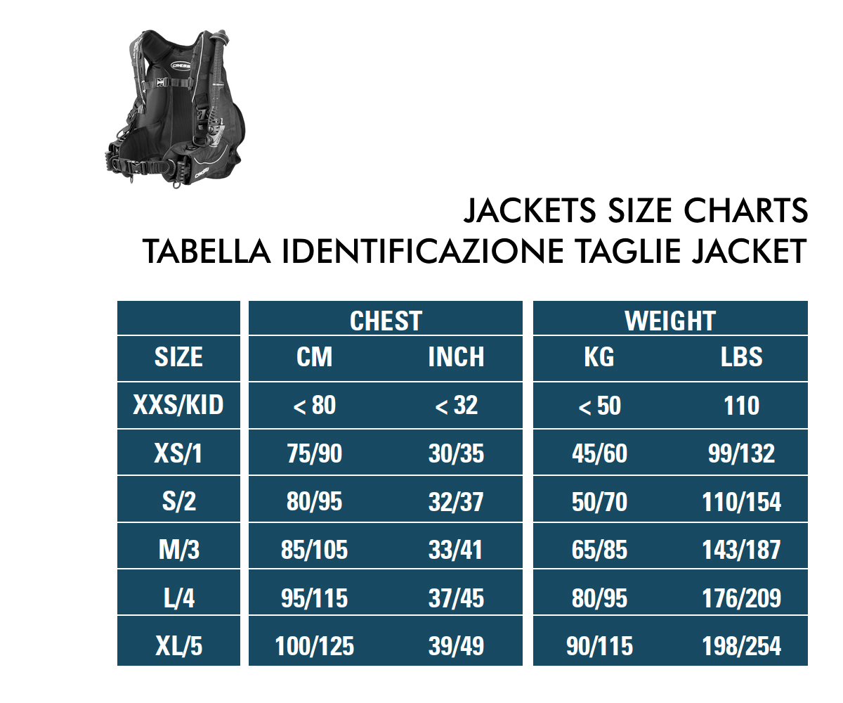 - Auftrieb: 6.1 kg (XS), 8.2 kg (S), 9.2 kg (M), 13.3 kg (L) 16.3 kg (XL)
