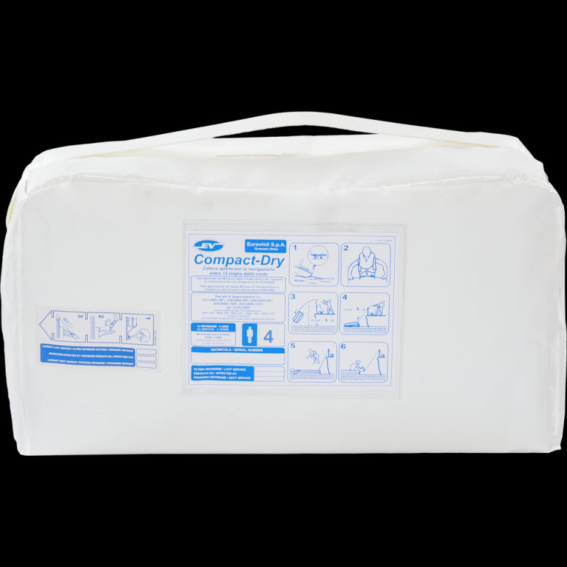 Rettungsmittel für die Navigation bis zu 12 Seemeilen von der Küste entfernt, zugelassen gemäß dem vom Generalkommandanten der Hafenbehörden am 2. März 2009 erlassenen Verwaltungsdekret, gemäß Artikel 54 des Ministerialdekrets Nr. 165 vom 28. Juli 2008. Erste Inspektion nach 3 Jahren, danach alle 2 Jahre. Maße: 65×36×20 cm, Gewicht: 26 kg.