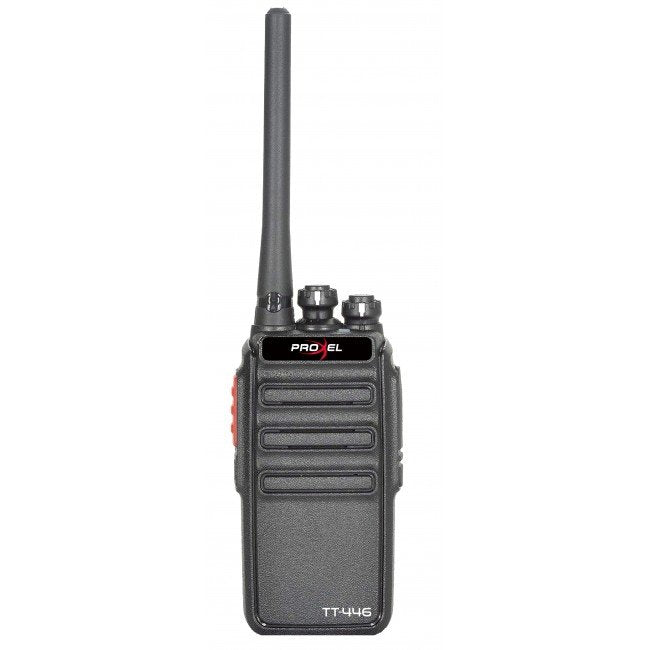 Dieser professionelle Transceiver ist kompakt, leicht, stoßfest, einfach zu bedienen, der richtige für Outdoor-Aktivitäten, Baustellen, Einkaufszentren, Lagerhallen und Fabriken. Es hat einen besseren Audiopegel (1W) im Vergleich zu den anderen Geräten auf dem Markt, es gewährleistet eine hervorragende Verständlichkeit der Nachrichten auch in lauten Umgebungen. Die Hochleistungsbatterie ermöglicht langlebige Arbeitsschichten. Der Kenwood-Steckverbinder ermöglicht die Verwendung einer großen Auswahl an Ohrhörern, Kopfhörern und Mikrofonen, so dass das Gerät für viele andere Anwendungen geeignet ist. Die PTT ist orange und ihre Form ist perfekt, um sie mit Handschuhen zu benutzen. Es ist möglich, es mit der Software zu programmieren, um den unterschiedlichen Bedürfnissen der Kunden gerecht zu werden. Der TT-446 ist also ein hoch konfigurierbares und individuelles Produkt.