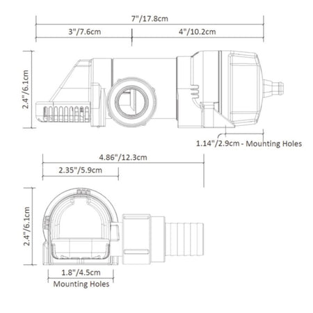 LoPro Lenzpumpe 900 GPH (3407 l/h), 12V, kompakt und leistungsstark, entwickelt für eine effiziente Wasserentfernung in engen Räumen. Bietet flexible Installation dank 180° drehbarem Pumpenkörper und mehreren Anschlussmöglichkeiten.