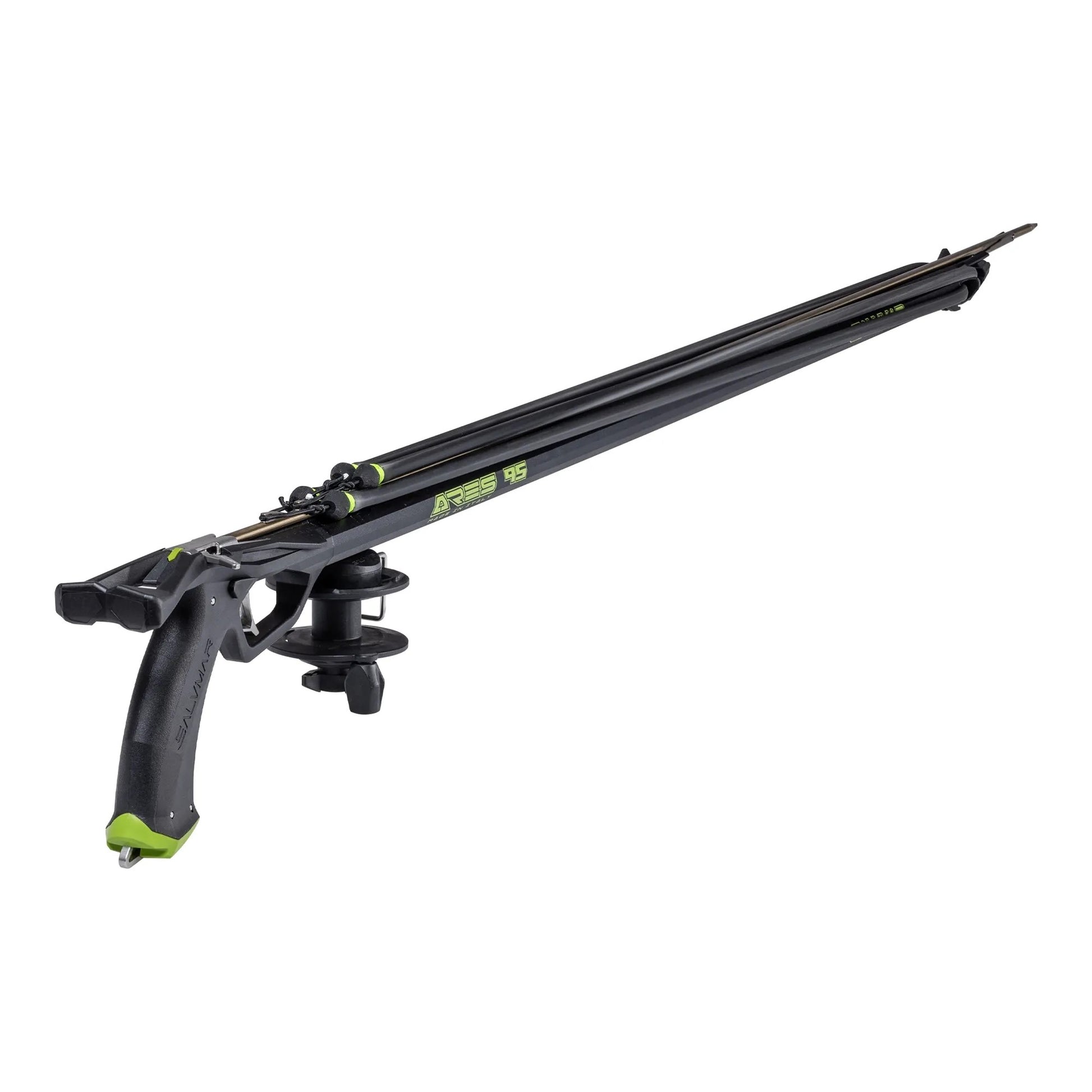 Die Harpunengruppe „Ares“ von Salvimar zeichnet sich durch hervorragende Technik und die Verwendung hochwertiger Materialien aus. Sie zeichnet sich durch ein ergonomisches Design und eine hochpräzise Verarbeitung aus und bietet eine optimale Handhabung und eine bemerkenswerte Schussgenauigkeit, die durch die ausgewogene Kraft der doppelten Kreiselastik unterstützt wird. Die Integration eines fortschrittlichen Auslösemechanismus und eines neutralen oder ergonomischen Griffs für die rechte Hand gewährleisten eine hervorragende Leistung und Anpassungsfähigkeit an die Bedürfnisse des Freitauchers. Vollständig in der Salvimar-Fabrik hergestellt, made in Italy.