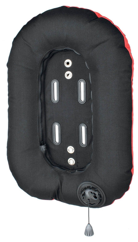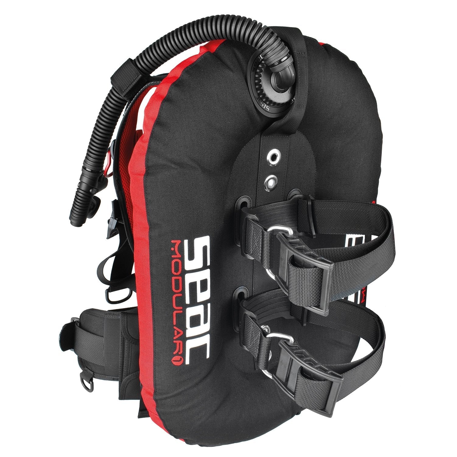 Grundausstattung: Zur Grundausstattung von SEAC® Modular gehören: Geschirr mit abnehmbaren Schultergurten und weichem Rückgrat mit abnehmbarem Stahlkern, eine Donut-Doppelblase mit 13,5 Litern Inhalt, 2 Schnellverschluss-Taschen für Gewichte, D-Ring und Bauchschnalle aus eloxiertem Aluminium .