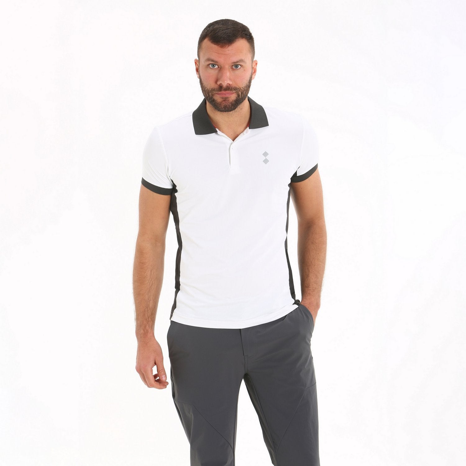 Dieses kurzärmlige originelle und unverwechselbare Poloshirt aus Funktionsgewebe ist auch zum Tragen während sportlicher Betätigung perfekt