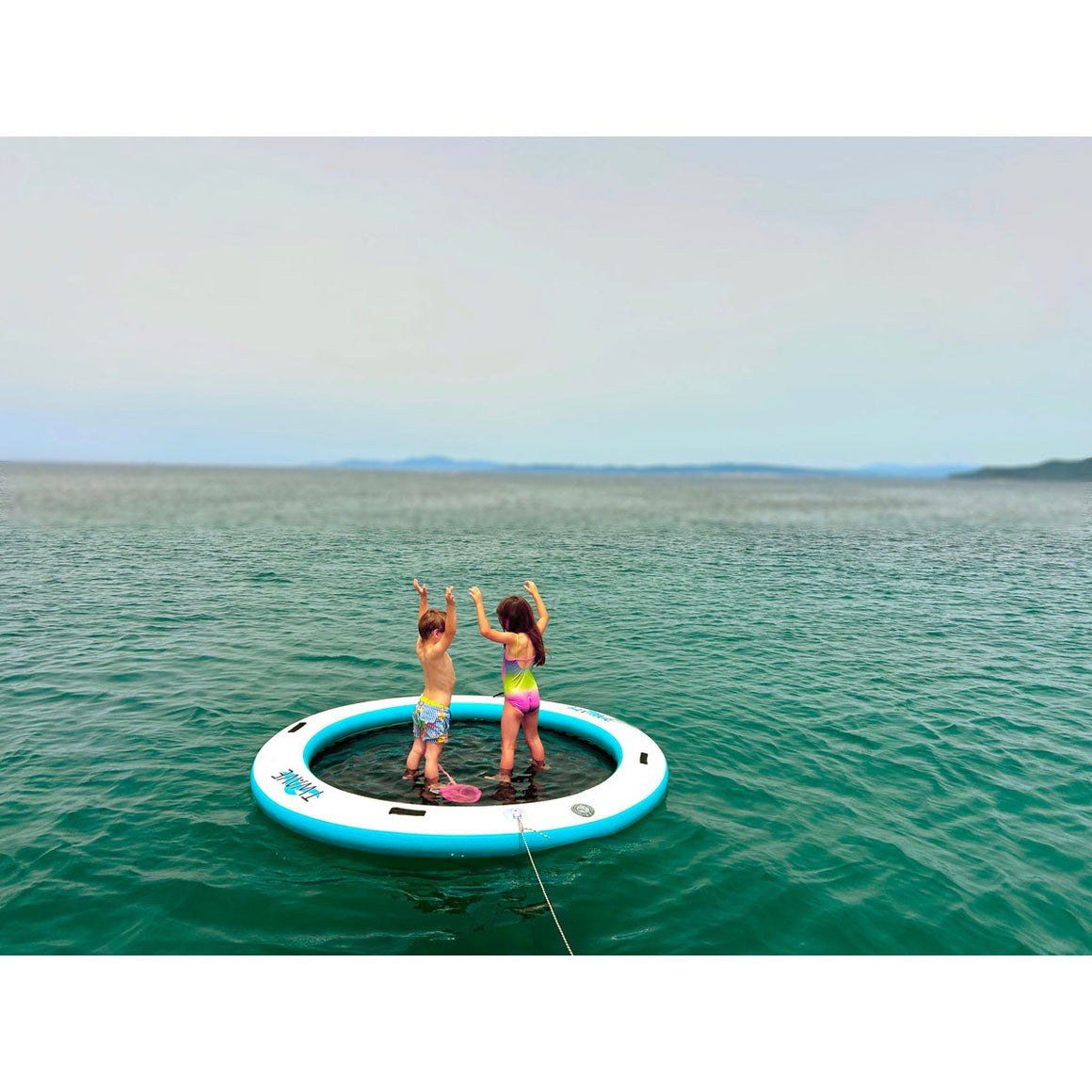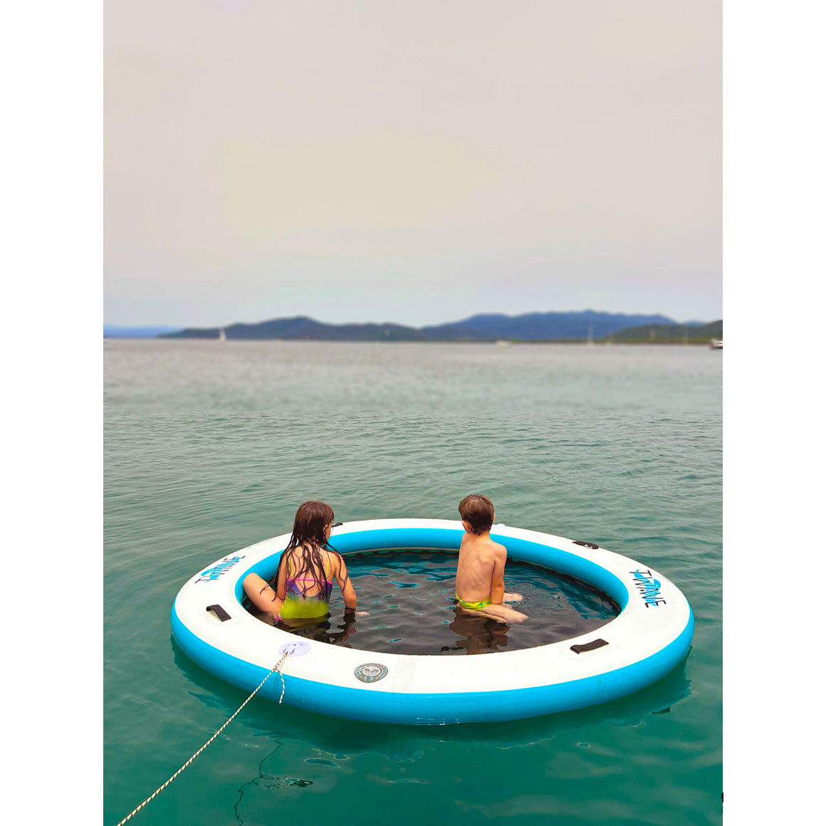 Entdecken Sie die aufblasbare Poolplattform T-WAVE , das perfekte Accessoire für alle, die das Meer, Entspannung und körperliche Aktivität auf dem Wasser lieben. Diese innovative schwimmende Insel ist mit einem gespannten Innennetz ausgestattet, das Ihnen ein komfortables und sicheres Sonnenbaden am Wasser ermöglicht.