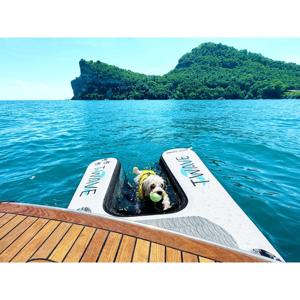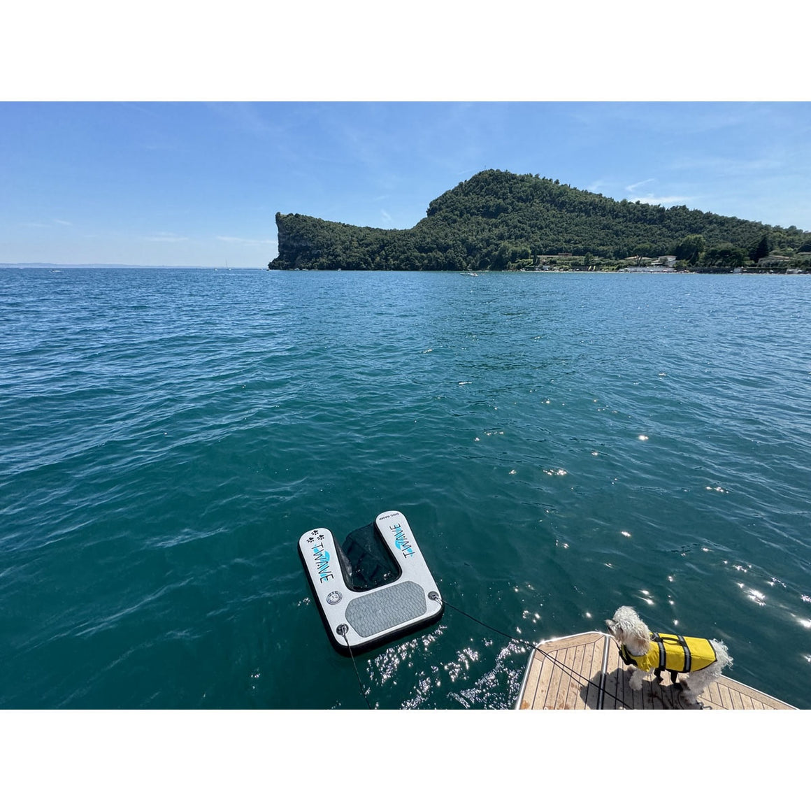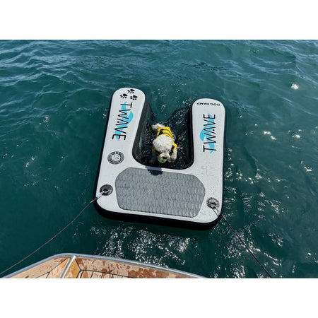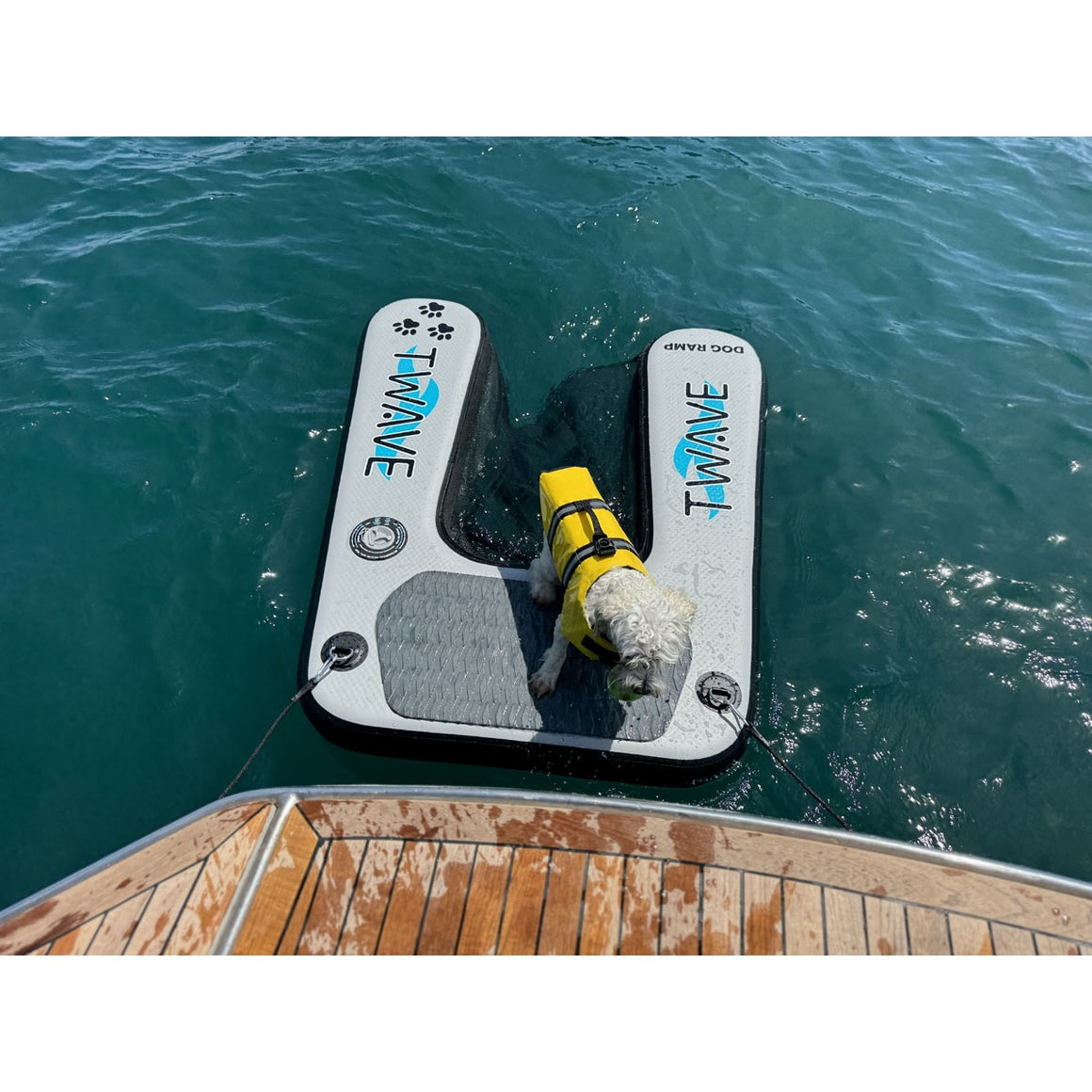 Mit der aufblasbaren Hunderampe T-WAVE kann Ihr pelziger Freund einen aktiven und unterhaltsamen Tag am Strand verbringen. Lieferung inklusive Transporttasche. So kann Ihr Hund bequem ins Wasser ein- und aussteigen.