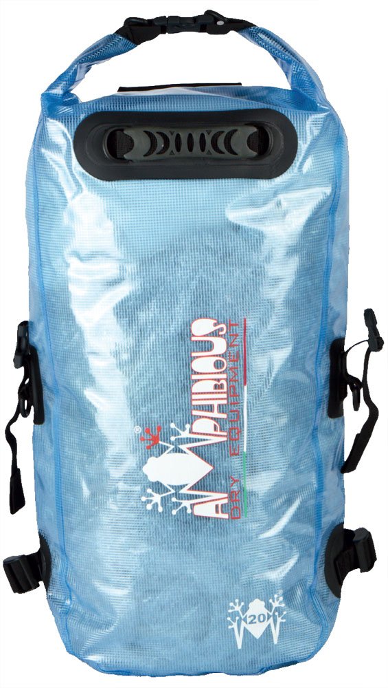 Features: - Capacity: 20 lt. - Rectangular section. - Quick PROOF closure system (top or side). - 2 sides ABS D-rings. - Light, padded, adjustable and removable shoulder straps. - Top PVC and cordura carry handles for easy transport. - Manufactured with fully Transparent PVC for immediate content view. Size (h x l x d): 60 x 32 x 14 cm Weight: 710 gr.