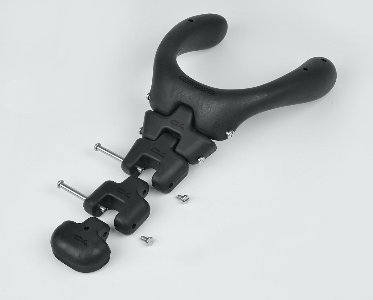 The weight works much closer to the point where the buoyancy forces balance, and thanks to the semi-mobile segments that follow the movements of the dorsal vertebrae, the swimmer is not restricted in his or her movements in any way.