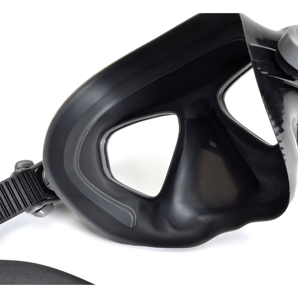 - The geometries are highly hydrodynamic and the mask travels through water without any tensions typical of deep dives and fast ascents.