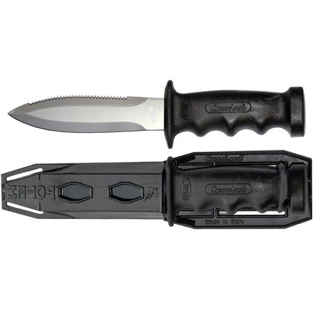The anatomic grip is made from technopolymers and has a series of moulds for the fingers, ending with a thumb protection tab at the blade end.