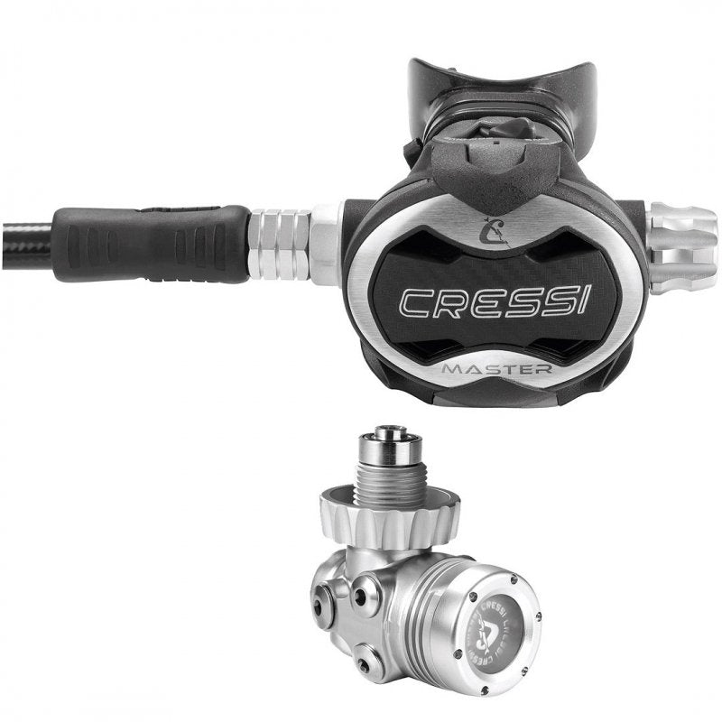 Performance, ergonomic reliability, and ease of maintenance make this regulator a product for true diving professionals. Instructors, guides, dive operators, and researchers will find the answer they need in the Master Ellipse. The first stage stands out from the range of Cressi balanced diaphragm regulators because the mechanism is arranged on an axis perpendicular to the axis of air entry, creating a "T" shape. The advantages of this particular design include better arrangement of the hoses and less space occupied (especially in SC versions for cold water). What's more, this makes it remarkably easy to inspect and access the mechanism to improve maintenance and calibration operations, it uses a larger, high-efficiency conical filter, and the valves are arranged more easily on the tank. The metal body is protected on the surface by a special treatment called PVD (Physical Vapor Deposition), which compared to traditional chrome coatings is exceptionally resilient to the mechanical and chemical wear caused by dives. The DIN fitting has a generous metallic handwheel to make it easier to use in extreme conditions. The Master Ellipse second stage has installed the exceptional and proven Cressi balanced valve to ensure minimum inhalation effort. This valve is paired with a body with metallic parts treated in PVD. What's more, the knob for adjusting inhalation effort is made of a metallic material to guarantee reliability and resistance to blows and scratches.