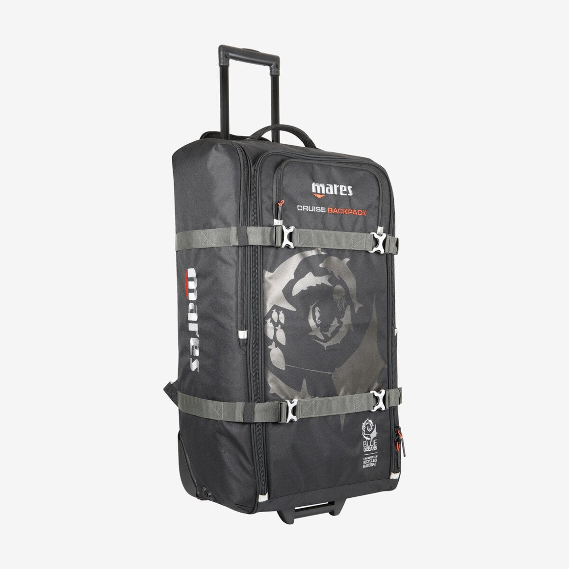 The Cruise Backpack diving equipment bag is perfect for your diving trips. Compact, lightweight and extremely roomy. Versatile and equipped with large wheels, a telescopic handle, shoulder straps and even fin pockets!