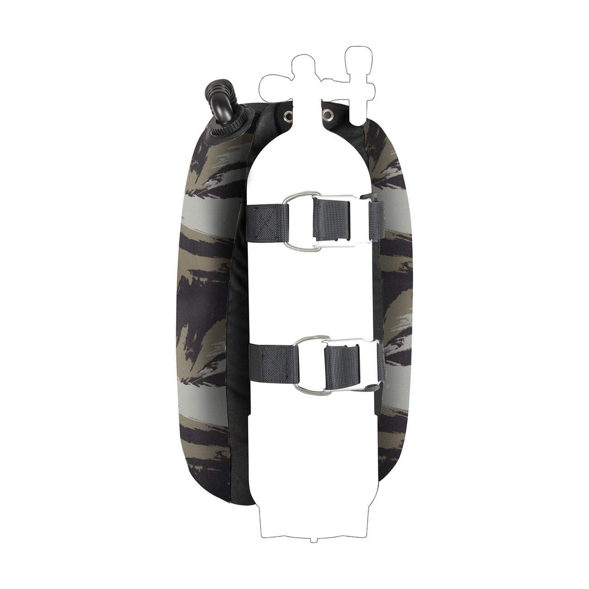 With a total weight of only 3.1 kg, the Tactical Green Backmount Set is perfect for travel or technical dives where every gram matters. Securing your tank is easy and secure thanks to two tank straps with silver aluminum buckles and black flat-head bolts that complete the clean, efficient design.