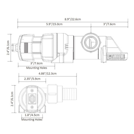 LoPro 900GPH automatic bilge pump, 12V with flow rate 3,407 l/h (900 GPH) without back pressure and 1,582 l/h (418 GPH) at 2 m head.