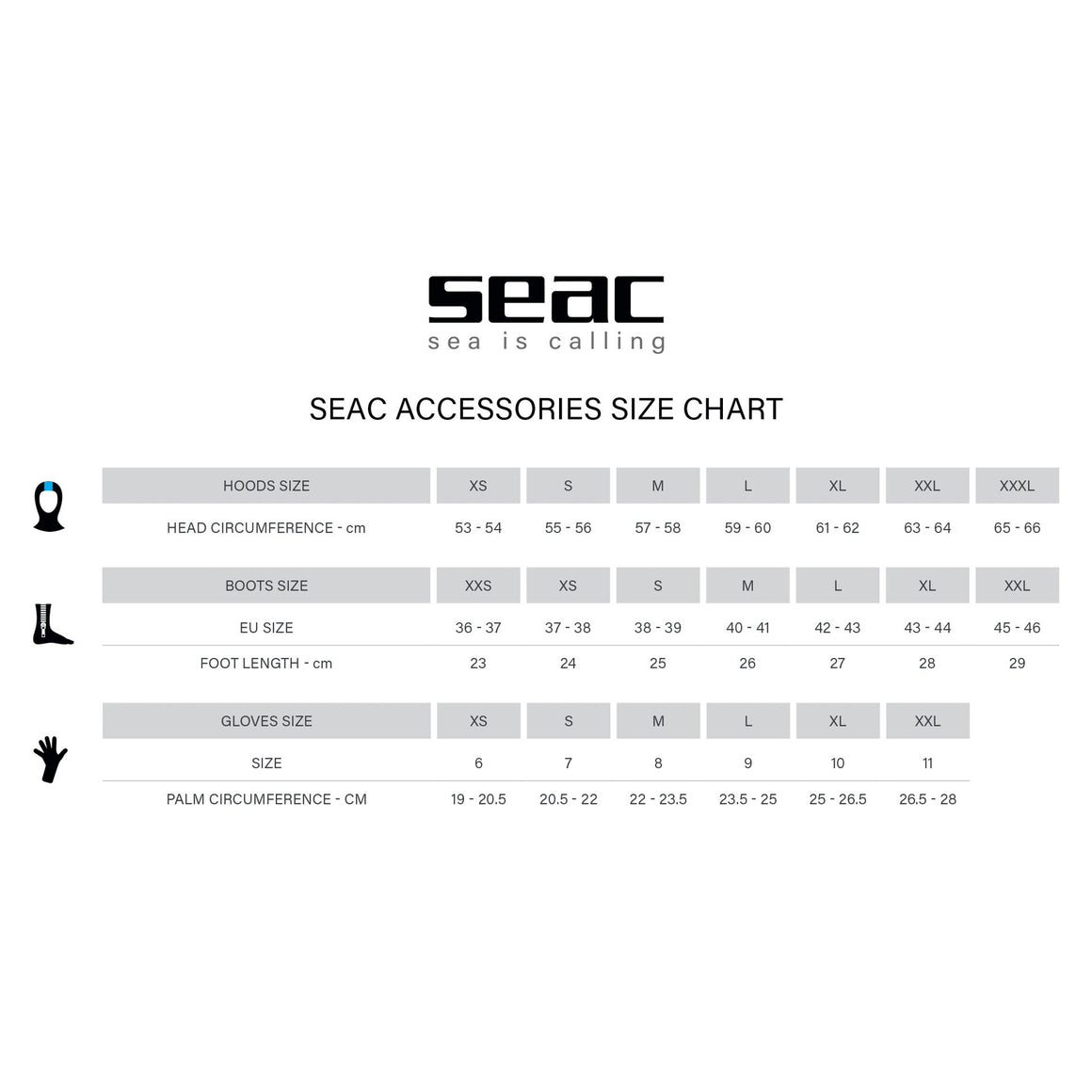 - 7 SIZES | The Seac Comfort 3.0 gloves are available in 7 sizes depending on the circumference of the palm (we recommend following the chart)