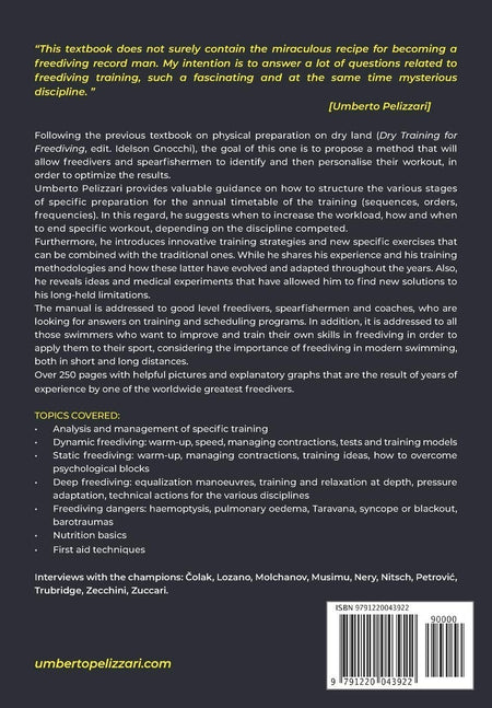 This manual is addressed to good level freedivers, spearfishermen and trainers, who are looking for answers about training and programs. Additionally it can be used by swimmers who want to train their own freediving skills in order to improve their performance.