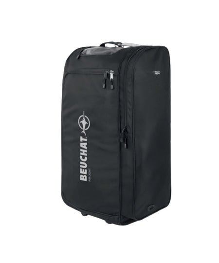 Bolsa plegable con ruedas que ocupa un espacio mínimo.