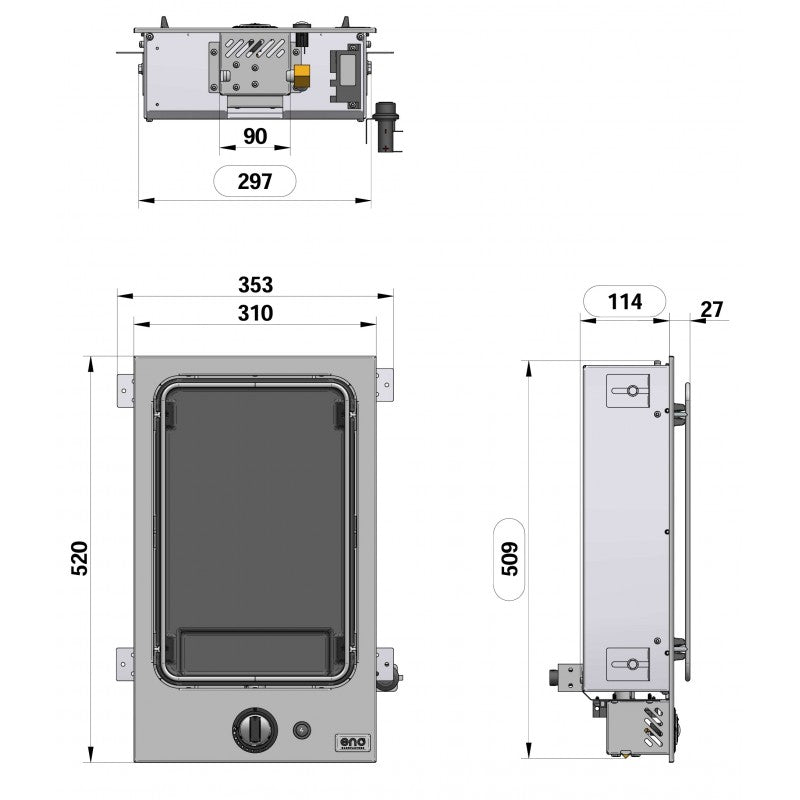 - Dimensiones de la superficie de cocción: 370 x 230 mm.