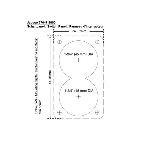 Interruptor de repuesto original Jabsco para inodoros eléctricos de las series 37X45, 37X55 y 37X75. Su diseño compacto (57 mm x 95 mm) permite instalarlo en espacios reducidos, garantizando un control fiable y seguro del sistema Quiet Flush.