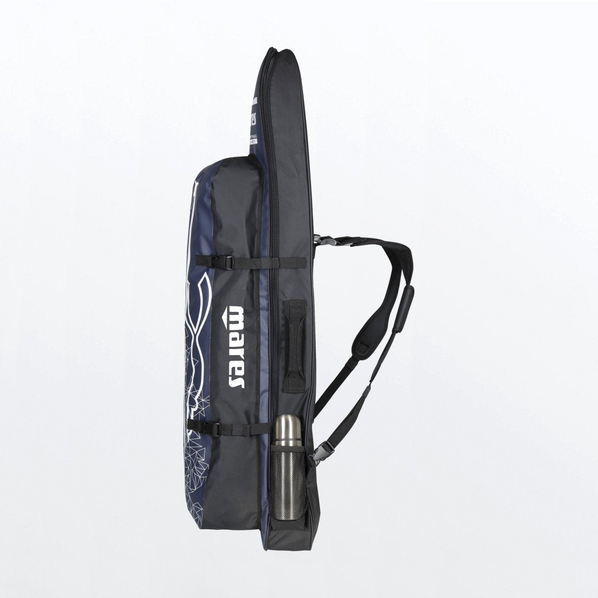 Bolsa para buceo en apnea Ascent Dry Fin Bag. Permite a los apneístas y pescadores submarinos llevar todo su equipo de buceo en una cómoda pero compacta bolsa. Esta bolsa de herramientas todo en uno se adapta a aletas muy largas, un traje de neopreno, una máscara e incluso un fusil, además de todo lo que necesitas para un día en el agua en una bolsa fácil de llevar incluso en un scooter.