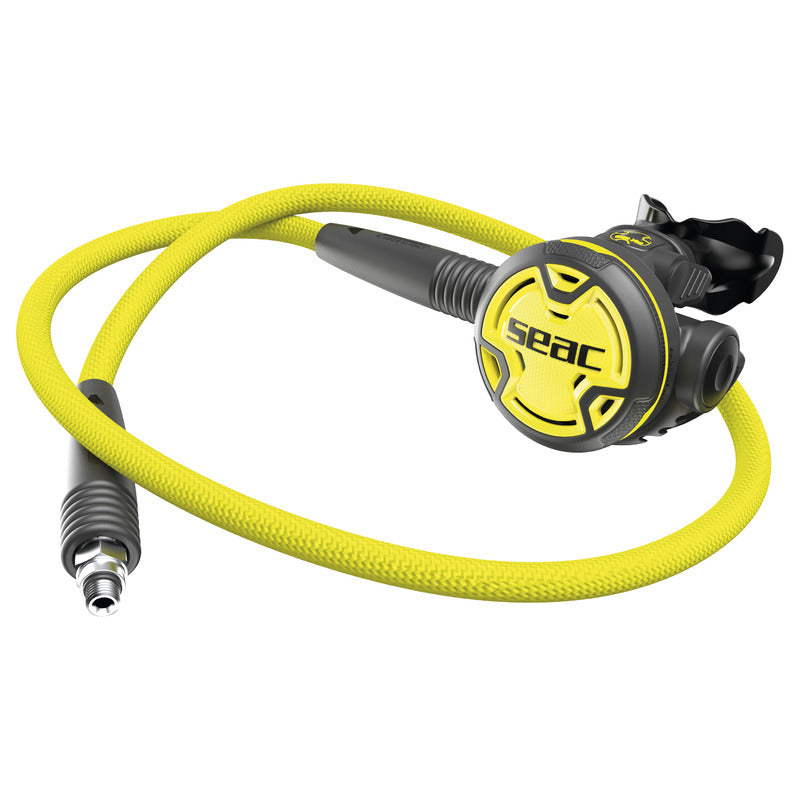 Regulador de emergencia SEAC PX OCTO con manguera de 1m con tapa trenzada. Posibilidad de ajustar el efecto Venturi (Dive / Pre Dive) con un simple comando. Cumple con todas las disposiciones de la norma CE EN 250-2014. Todos los componentes son Made in Italy.