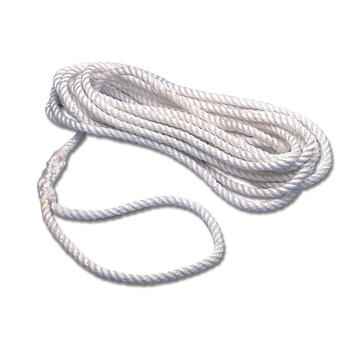 3-strand twisted mooring line in white polyester with eye. Special for mooring provided at one end with a 20 cm loop.