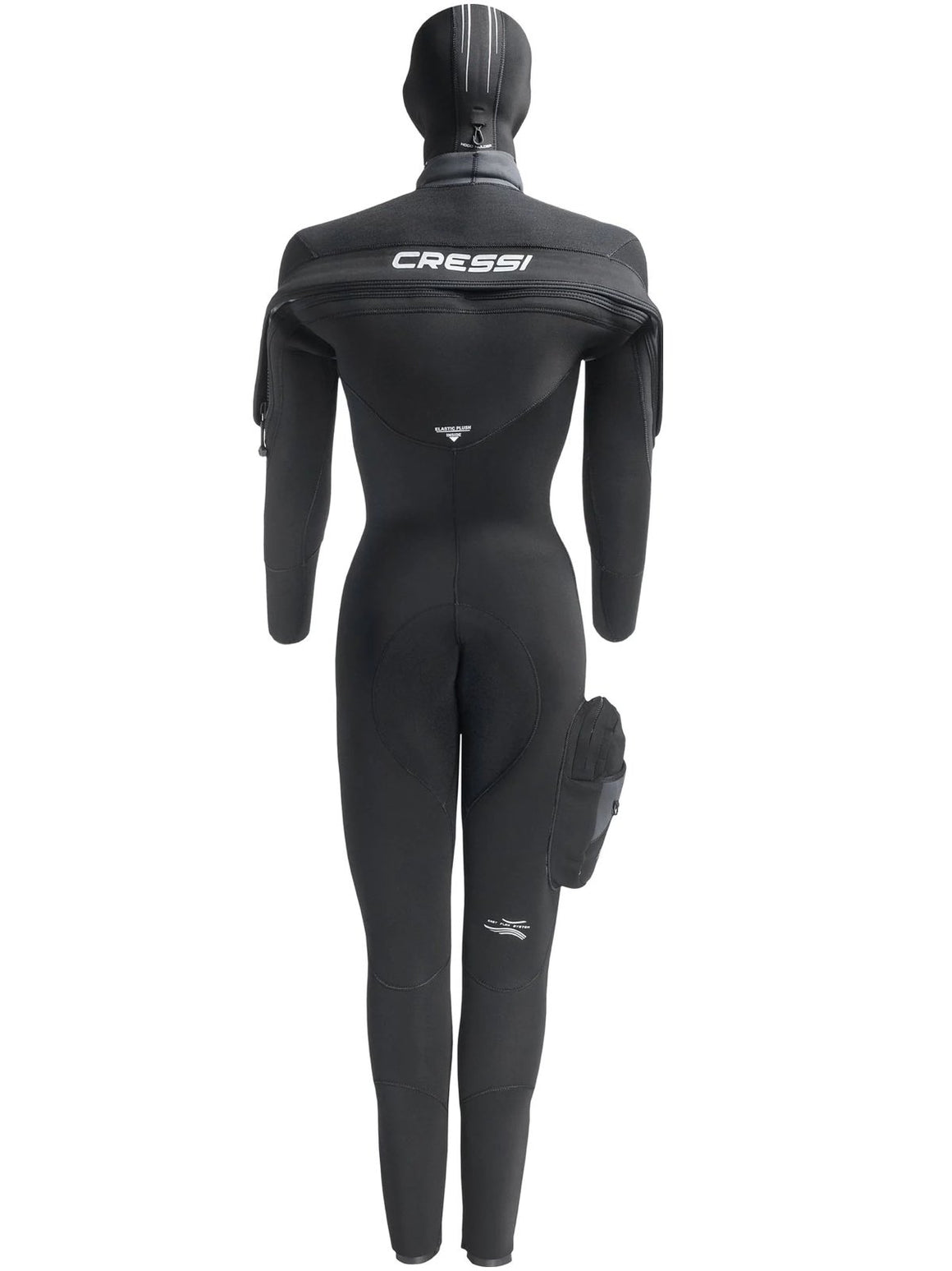 Elle est notamment dotée d'une poche latérale double compartiment pour faciliter le rangement d'accessoires indispensables à la plongée . L'un de ces compartiments est doté d'une fermeture à glissière, tandis que l'autre, destiné aux objets facilement accessibles, a une fermeture velcro . Deux anneaux d-ring permettent d'accrocher des objets . Elle est dotée de hood holder pour accrocher la cagoule et renforts en small dymond anti-usure sur les épaules, genoux et à l'arrière . Deux manchons sur les poignées et chevilles . Charnière étanche master seal confortable à l'arrière .