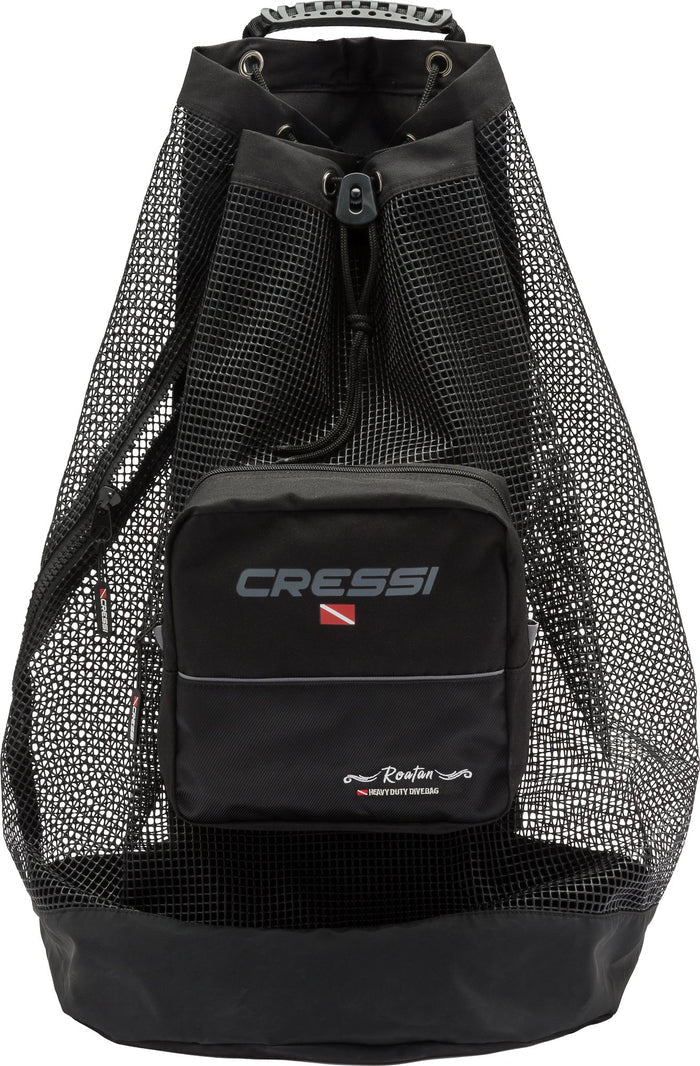 Le sac en maille roatan est parfait pour regrouper tout votre matériel de plongée. Fabriqué en polyester haute densité, ce sac en maille permet de transporter facilement tout votre matériel. Le sac est muni de deux points d'accès, fermés l'un par un cordon en haut, l'autre par une glissière de grande taille sur le côté, permettant de facilement sortir le matériel même s'il est humide. Ce sac peut être porté sur le dos, avec des sangles réglables et rembourrées et la sangle de poitrine. Il peut également être transporté grâce à ses deux poignées renforcées, l'une sur le côté et l'autre sur le dessus. Il y a également une poche semi-étanche sur le devant avec une fermeture à glissière. Une évacuation dans le fond en pvc renforcé permet de faire partir toute l'eau, ce qui en fait un outil parfait pour rincer votre matériel après utilisation. Le roatan est conçu en italie par cressi, et fabriqué en chine. Depuis 1946, cressi est une marque italienne pilote dans le domaine du matériel pour la plongée sous-marine, la randonnée palmée et la natation. Le produit est couvert par une garantie limitée de 2 ans