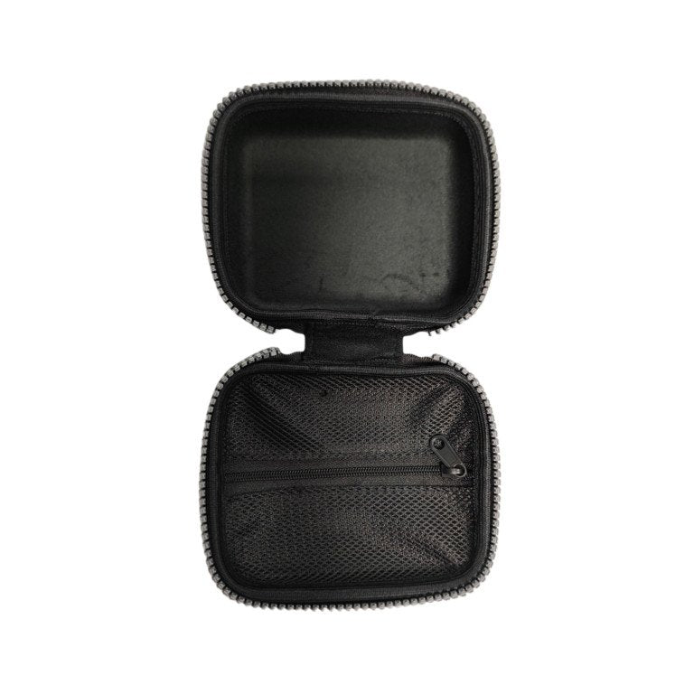 À l'intérieur, l'étui rigide est divisé entre une section principale ouverte et une petite poche en filet zippée pour ranger les éventuels câbles de charge ou accessoires.