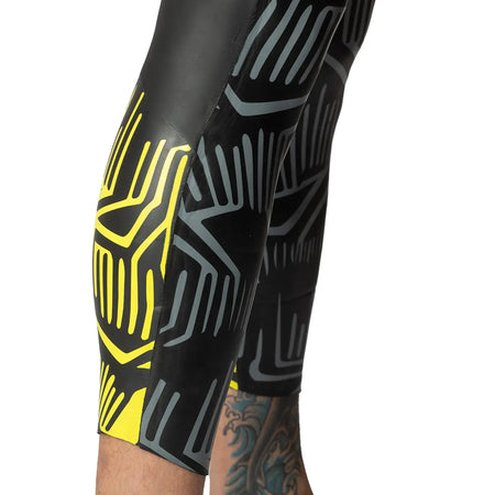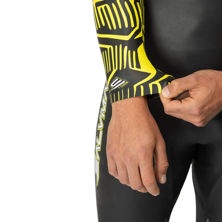La combinaison présente des épaisseurs variables de 1,5 mm à 3 mm, conçues pour optimiser la flottabilité et l’efficacité hydrodynamique à chaque phase de nage. Cette conception technique permet de maintenir une position stable et naturelle dans l’eau, réduisant la fatigue musculaire et améliorant la performance globale.