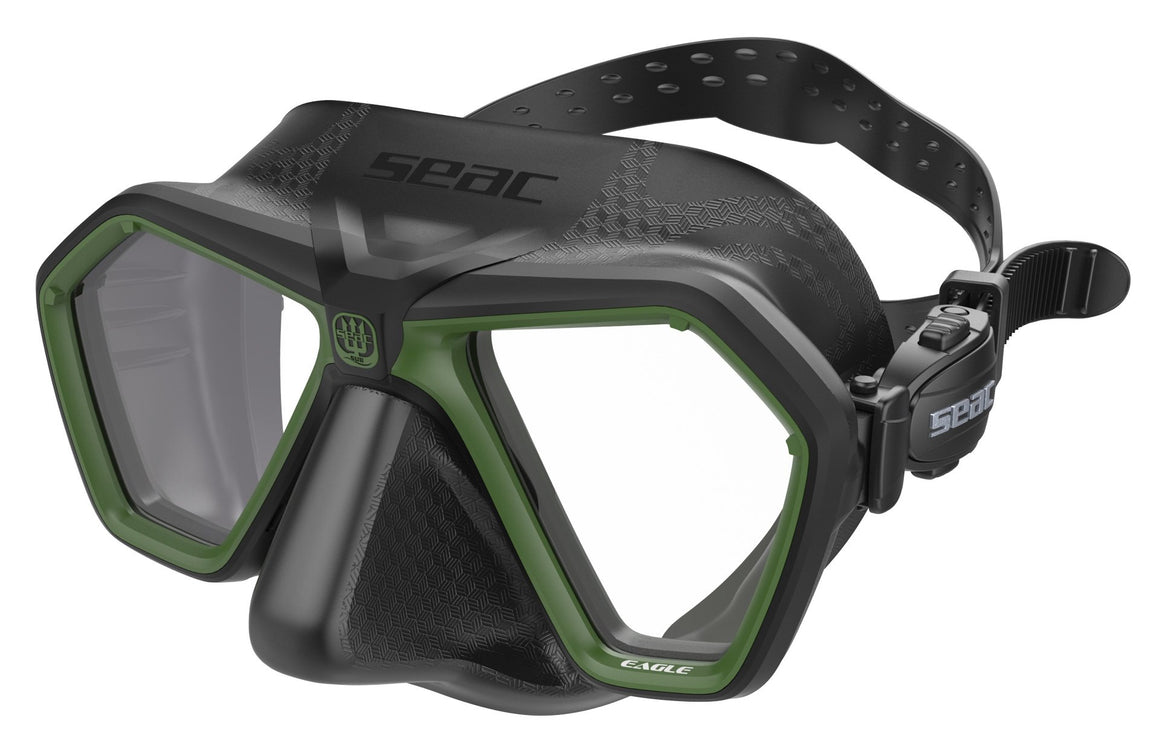 Le masque SEAC Eagle est disponible avec des verres à deux lentilles transparents .