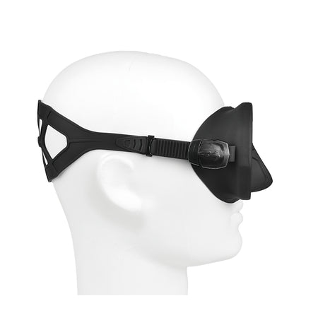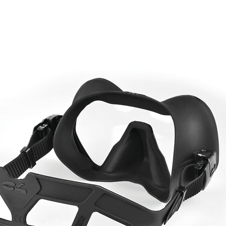 Il silicone anallergico assicura un’eccellente aderenza al viso e una tenuta stagna affidabile, mentre la costruzione frameless riduce peso e ingombro, migliorando idrodinamica e comfort anche durante utilizzi prolungati.