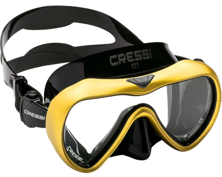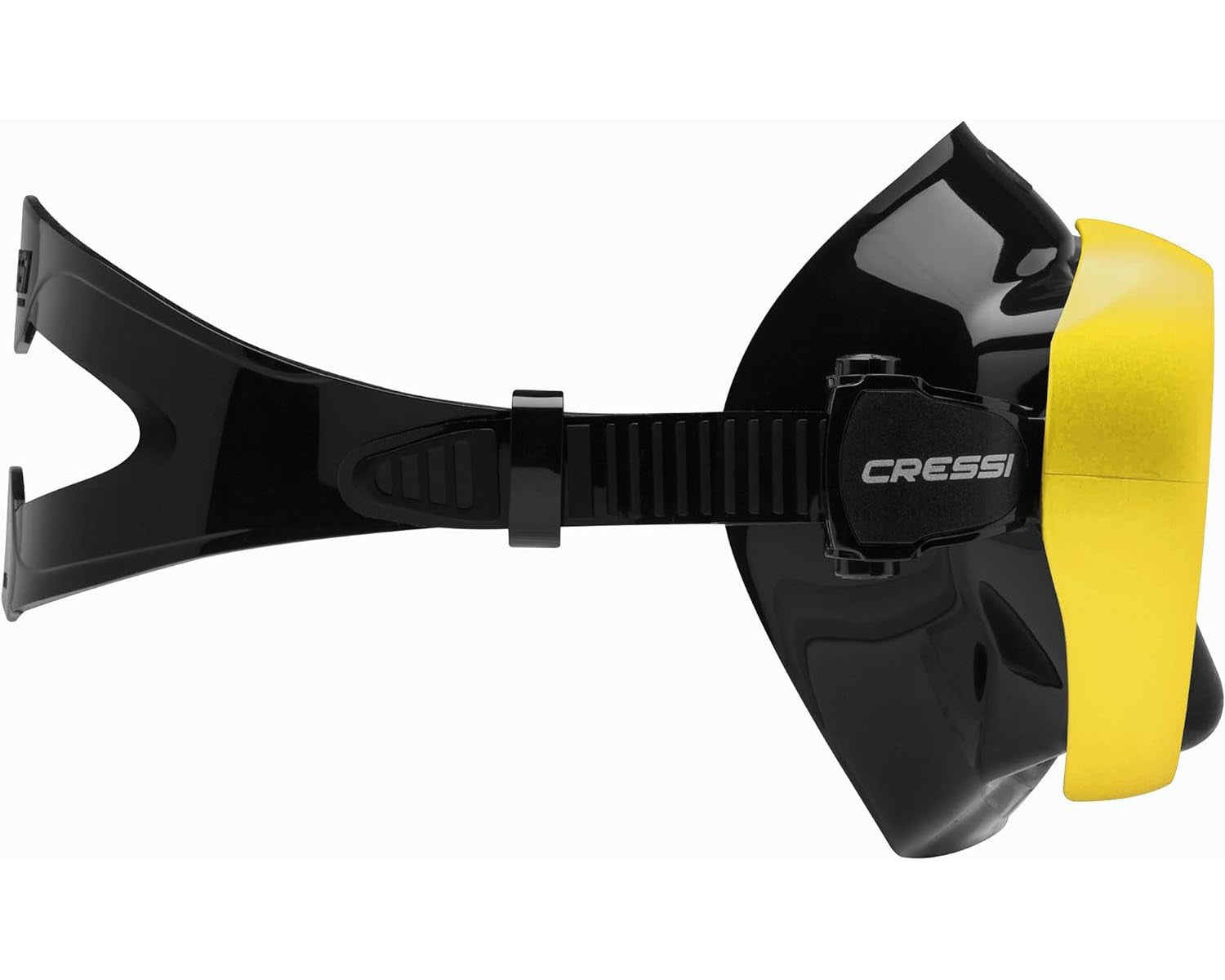 Le lenti sono inclinate e hanno una forma a goccia rovesciata, aumentando la visibilità verso il basso. Ciò consente un migliore controllo dell'attrezzatura subacquea.