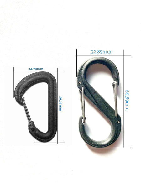 Divemarine Kit Moschettoni in nylon nero rinforzato con fibra di vetro, blocco inox