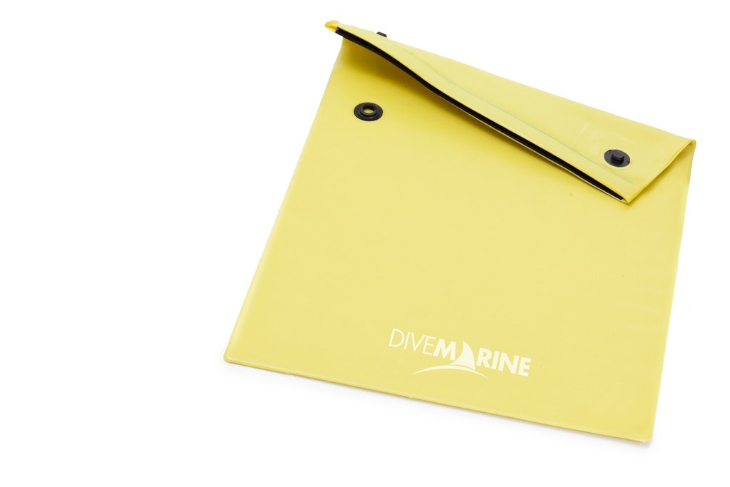 Busta stagna portadocumenti in pvc giallo, chiusura con velcro. Dim: 35x30cm