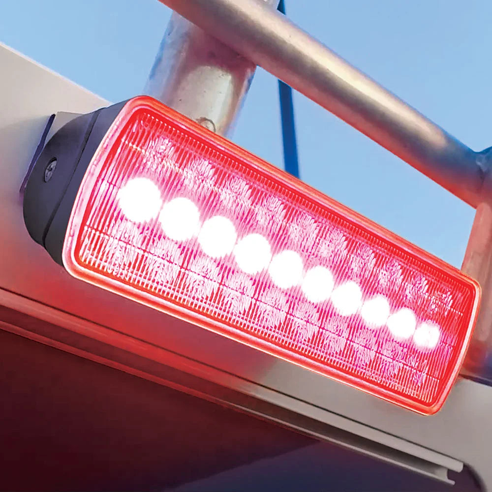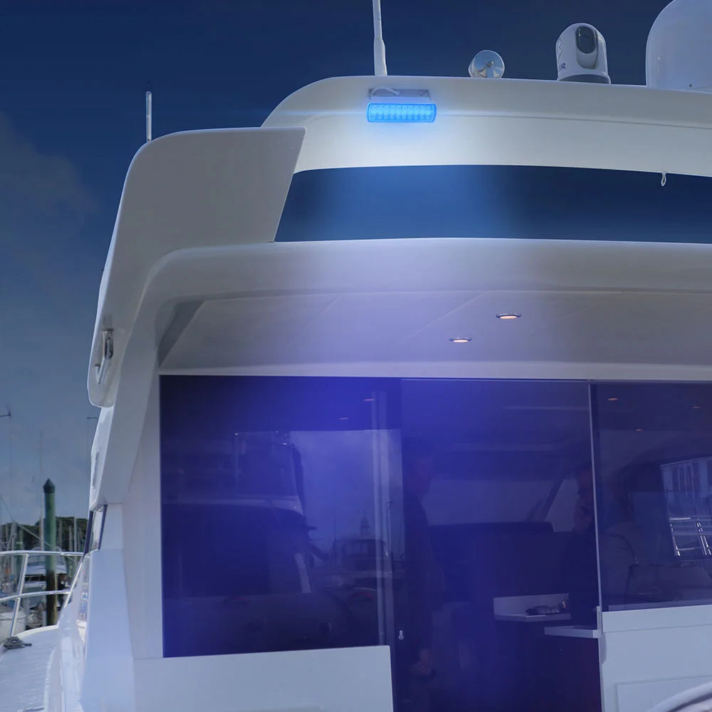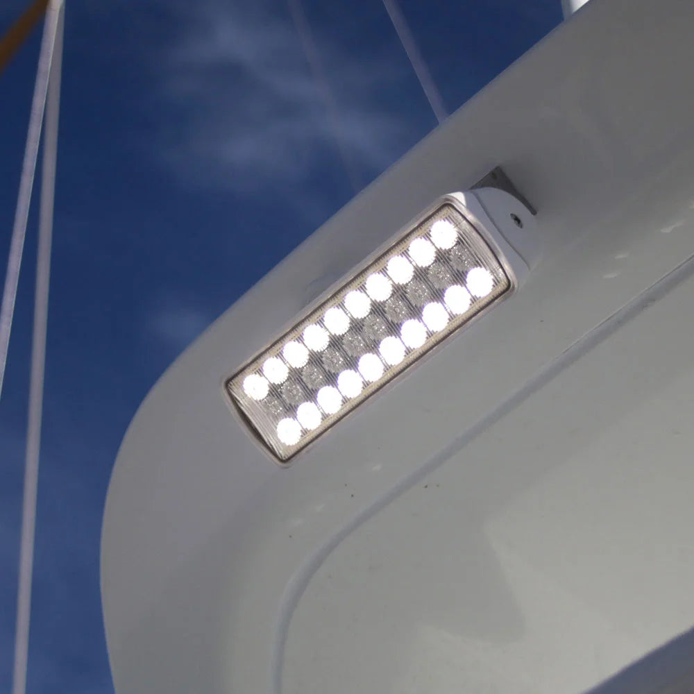 Le due file principali di LED offrono una potente luce bianca ideale per manovre, ormeggi, pesca sportiva e utilizzo professionale, mentre la terza fila consente di selezionare il colore secondario in base alle esigenze operative o estetiche.