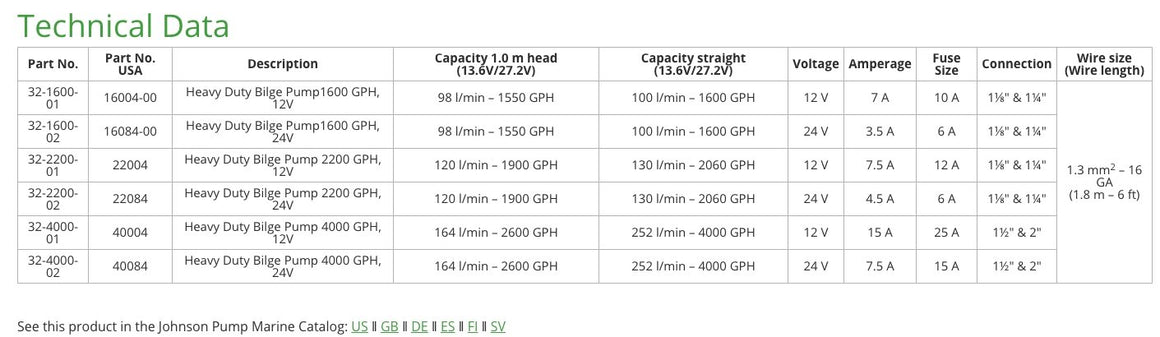 Johnson L1600 HD - 12v - 98 L/min - 1600 GPH