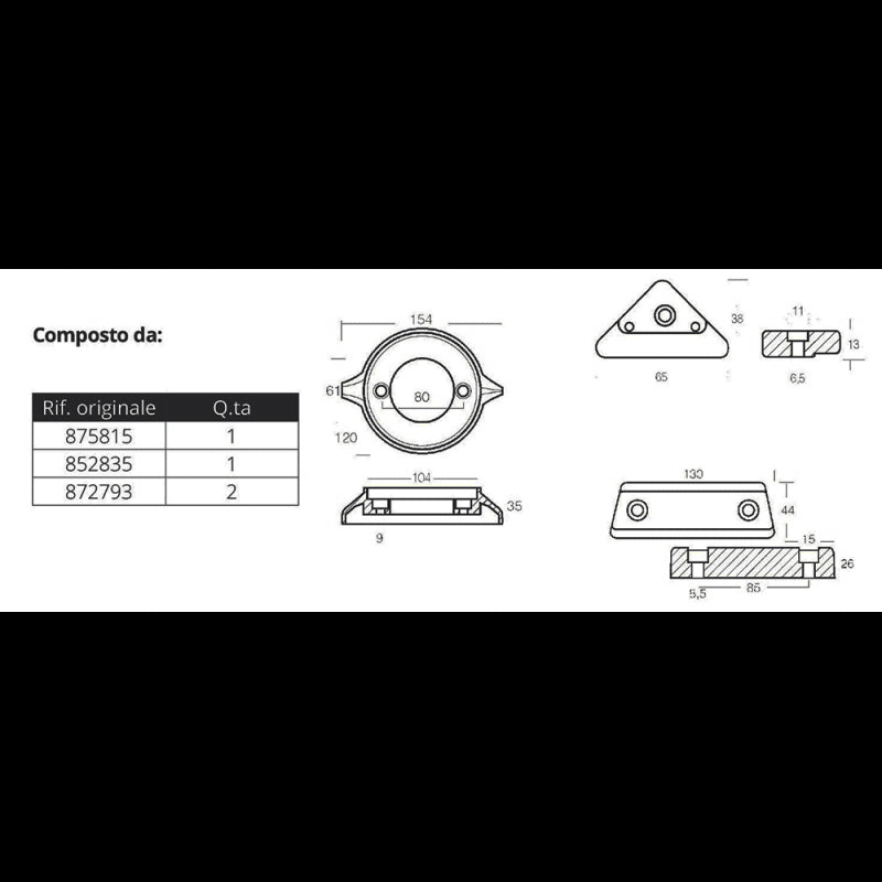 Kit anodi in alluminio per motori Volvo Penta 290 C
