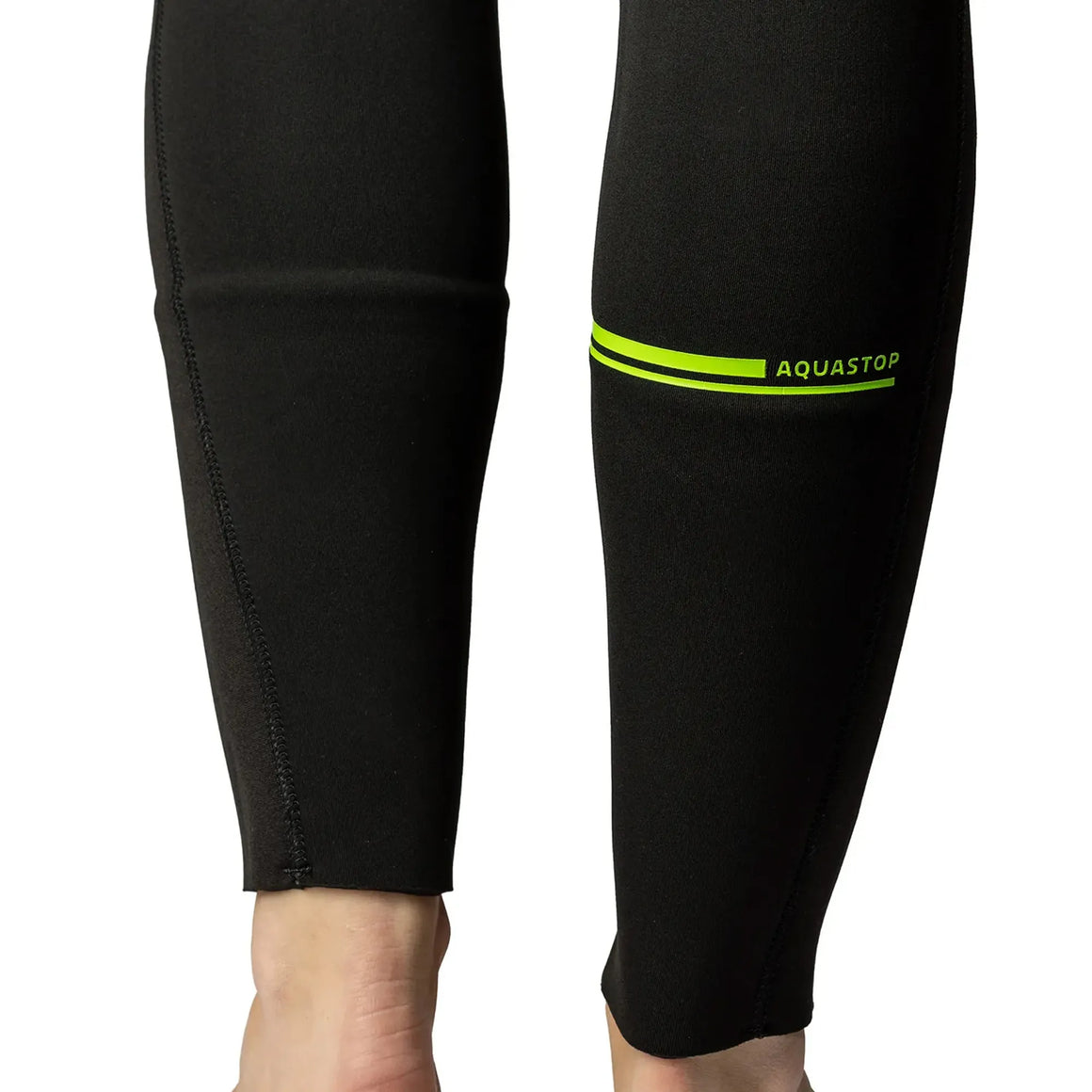 Per una protezione completa, la muta è dotata di ginocchiere in Supratex, un materiale altamente resistente all’abrasione, ideale per le zone di maggior contatto. Il sistema Water Stop, applicato su avambracci e polpacci, previene efficacemente le infiltrazioni d’acqua, mantenendo il corpo asciutto e la temperatura costante.