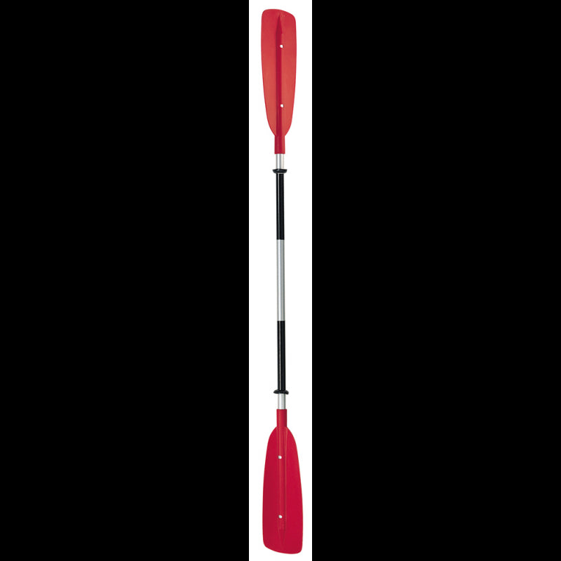 Doppia pagaia fissa in lega leggera anodizzata, tubo Ø 30 mm, lunghezza 210 cm, con pale in ABS rosse. Peso 1,35 kg.