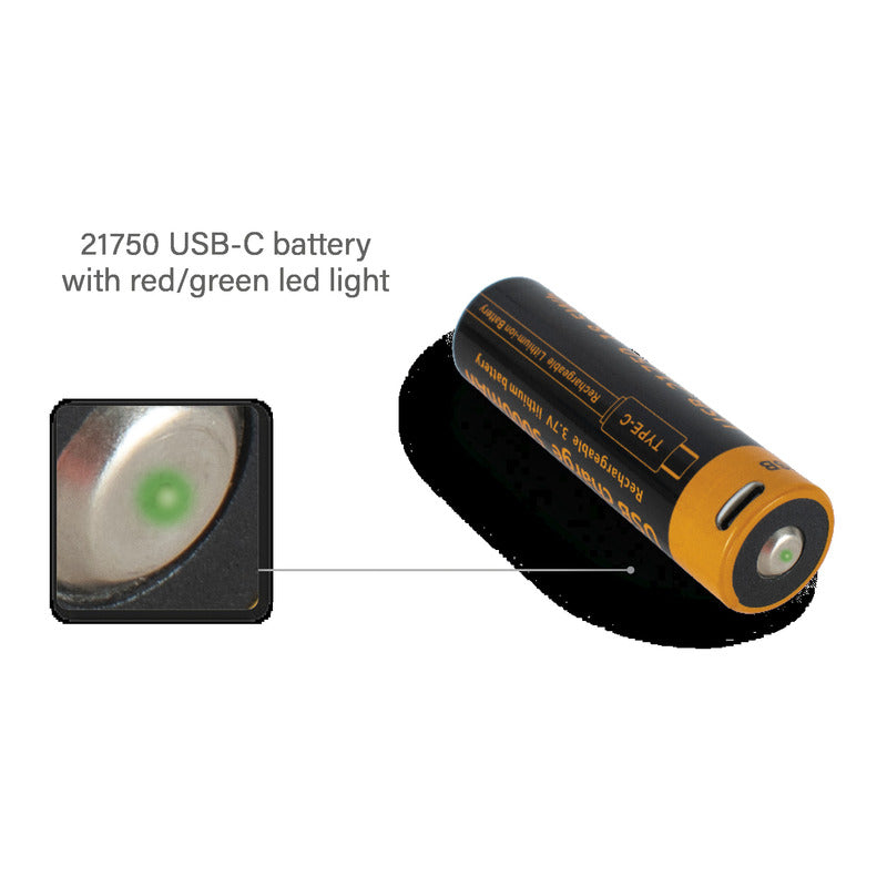La batteria Li-Ion ricaricabile da 5000 mAh (modello 21750) assicura fino a 6,5 ore di autonomia in modalità ridotta o 2,5 ore a piena potenza.
