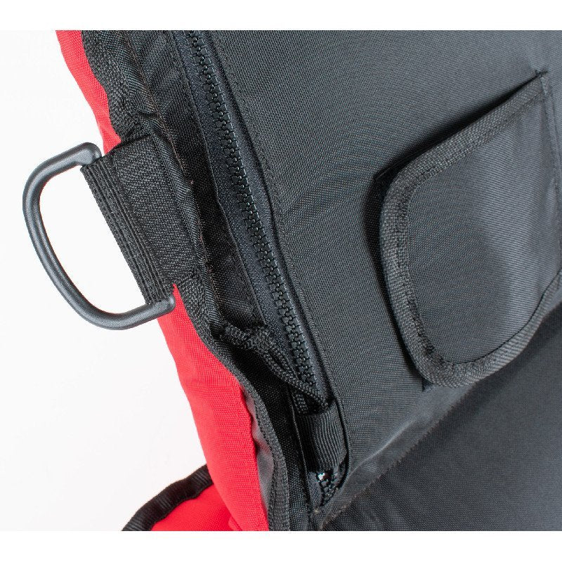 Caratteristiche funzionali: • Materiali: poliestere 420 D con fondo nero e parte superiore arancione ad altà visibilità • Capiente tasca a gavone • Cinghie elastiche laterali per il fissaggio di fucili ed aste • 7 anelli a D sotto la chiglia per traino o ancoraggio di attrezzi supplementari • 2 maniglie sulla prua da utilizzare durante lo spostamento • 3 camere d’ aria in PVC indipendenti tra loro per garantire massima sicurezza • 1 bandierina Alfa a prua • Pompetta non inclusa in dotazione • Dimensioni: cm 85x60 Peso: 1740 g.